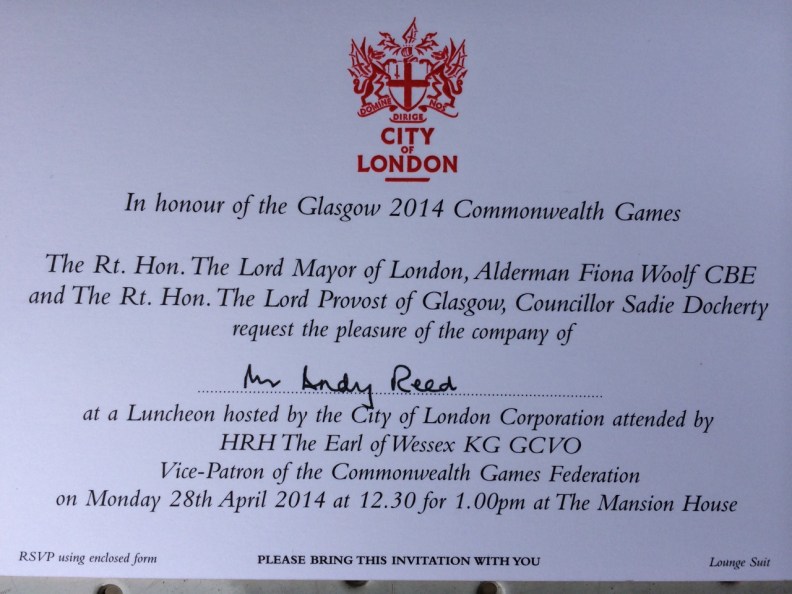 Heading to another sport lunch – but finally starting to seriously gear up for the 2014 Commonwealth Games – assuming the train ever arrives at Loughborough!