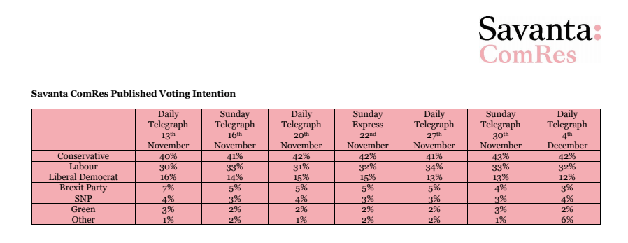 This Savanta- ComRes Poll shows the 10% lead largely remains (within the margin of error)
