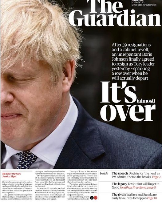 I cheered the downfall of Johnson. I had Covid when the curtain finally fell as his Ministers one by one resigned and I loved watching the Resignation counter being updated by the minute. I had always hoped his end would be humiliating.