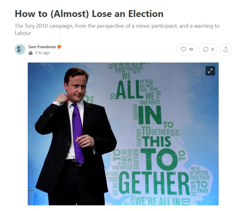 So this helpful blog by Sam Freedman is a timely reminder that the next election is not won yet!